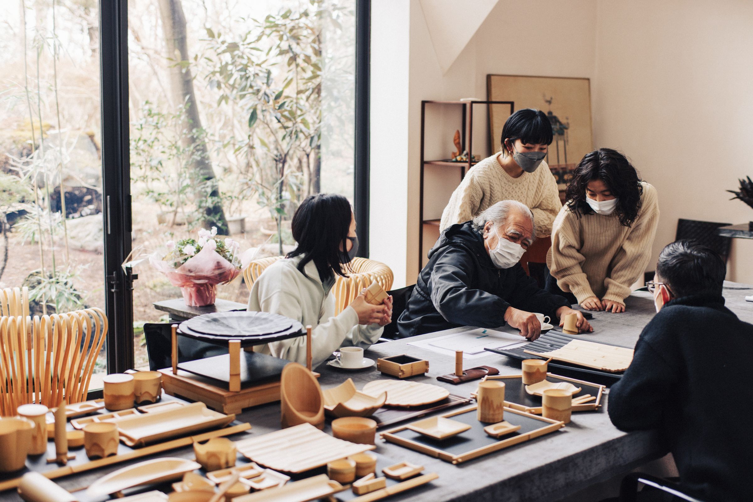 長らく「木」を使ったもの作りをしてきた戸沢さんだが、7〜8年前に「竹」と出会った。きっかけは熊本にある、数万本という竹林と共存した古民家を生かした、ミシュラン5つ星の高級宿「竹ふえ」。ここのレストランで使う、竹の器の制作をプレゼンして製作した。